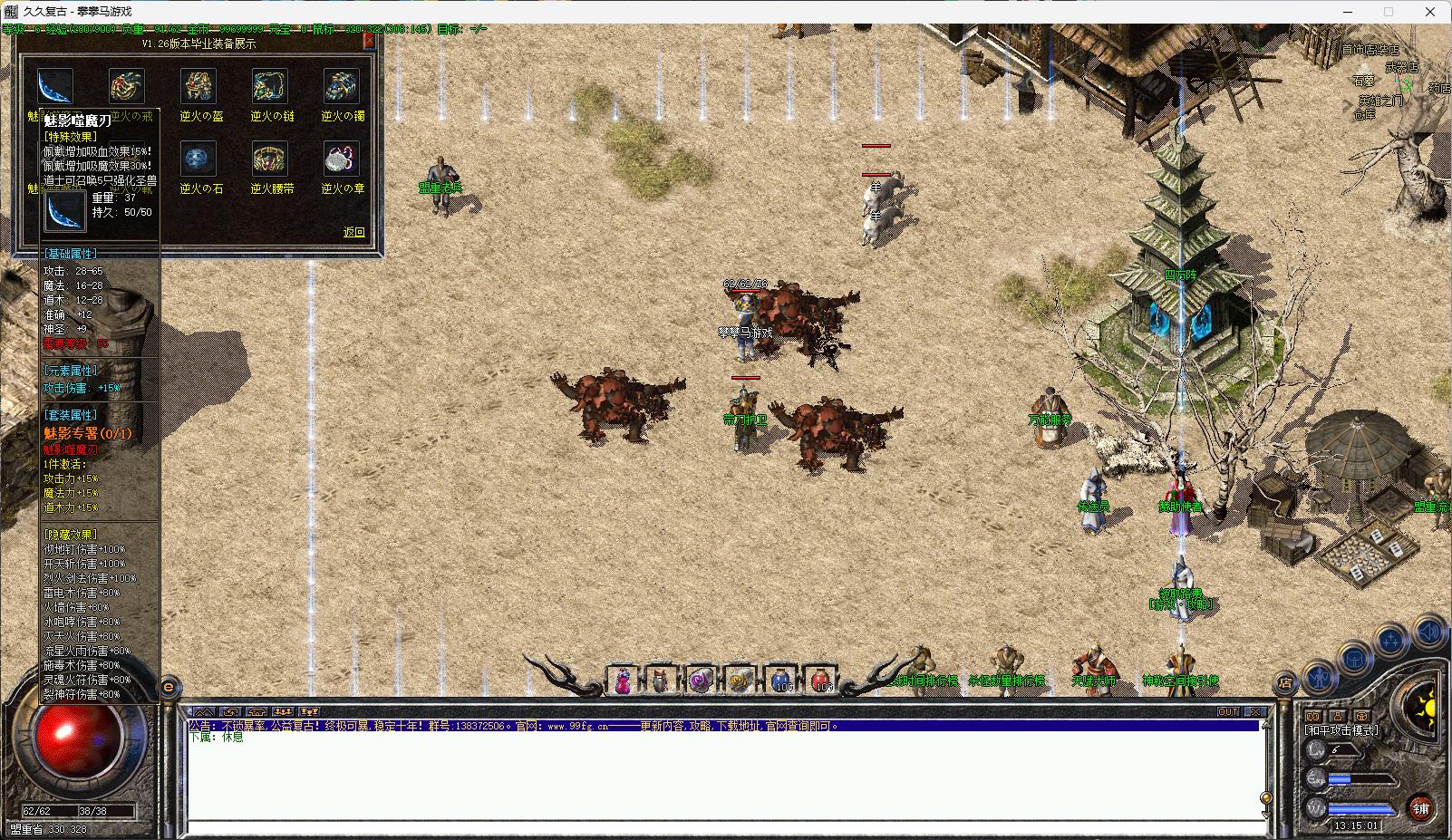 5、装备材料存够,法师升五行,带上流星火雨的武器,就可以把主力法师放在幻境练级,再丢两个法师到恶魔祭坛和赤月巢穴刷怪,因为本服只要组队,在哪里都能吃到经验,在幻境就可以享受双倍经验!!!
