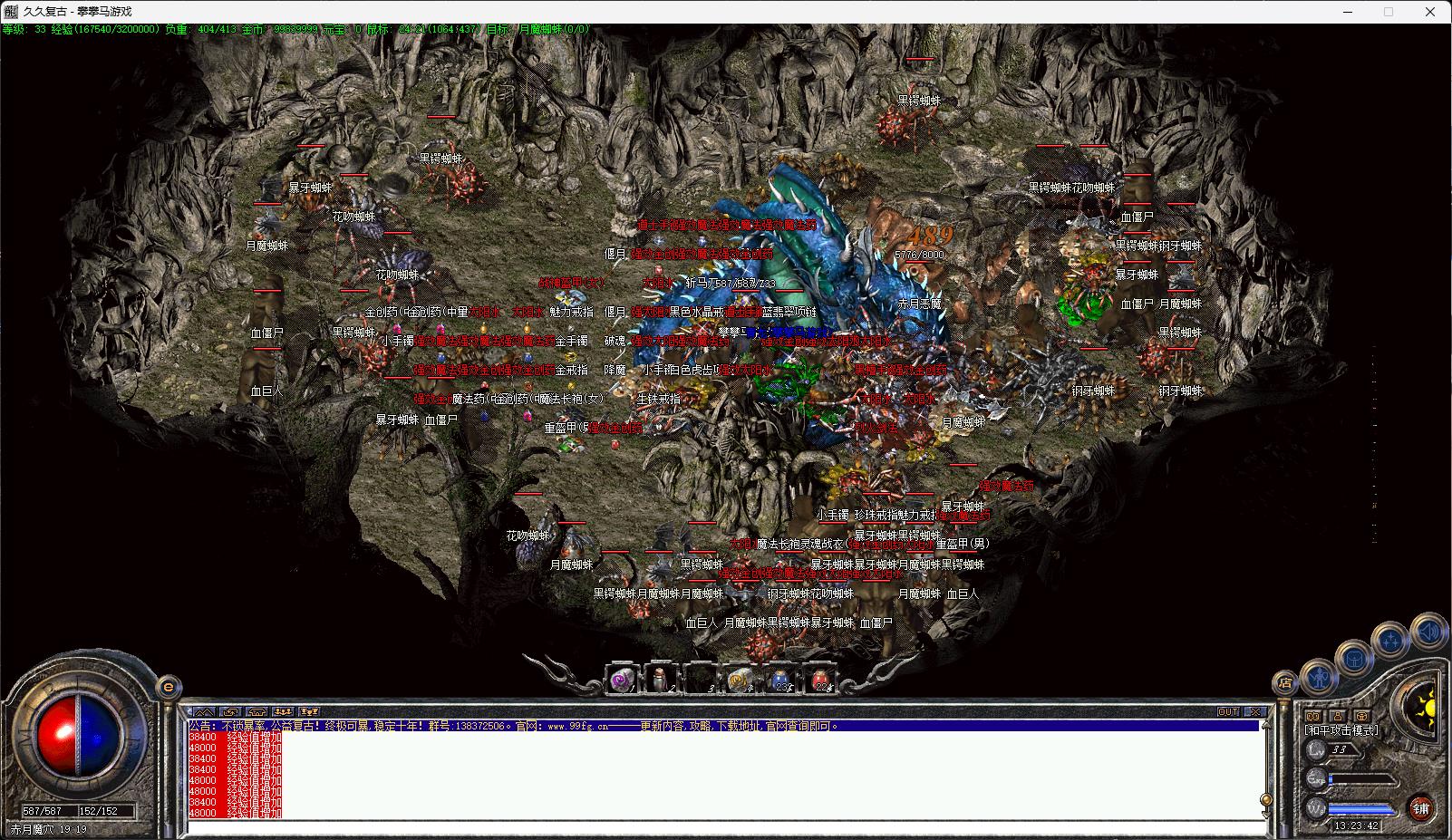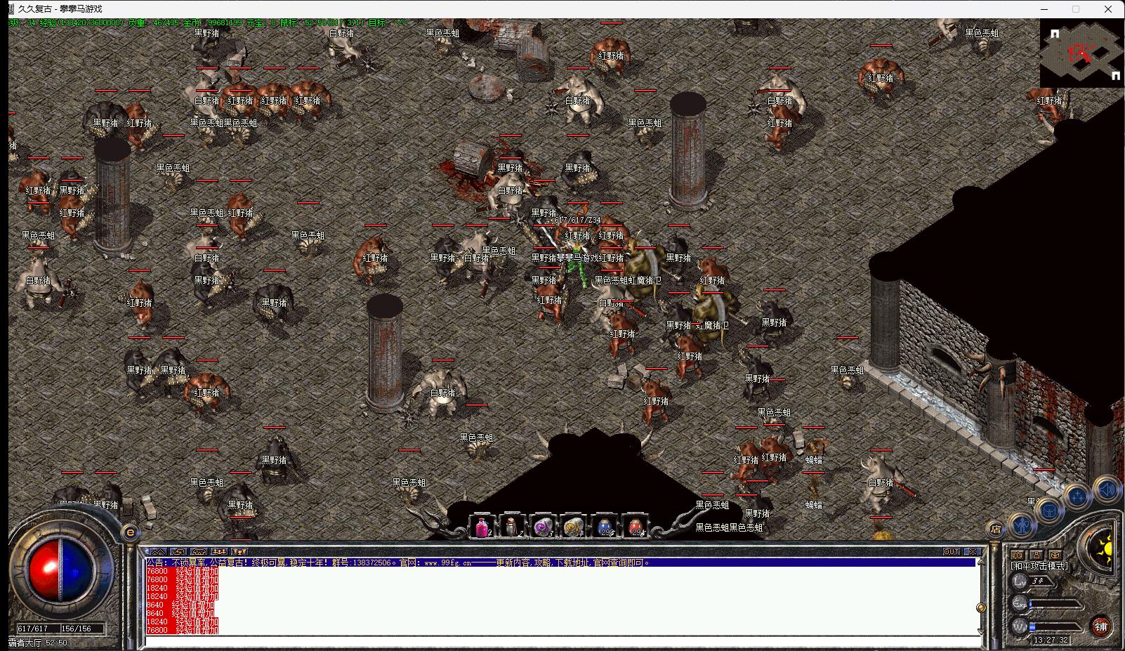 2、练到17级,直接进幻境,下到2层,愉快的打猪吧,到了35级就用冰咆哮、神兽、烈火打怪,这里的冰咆哮魔改过,5*5范围爽歪歪。