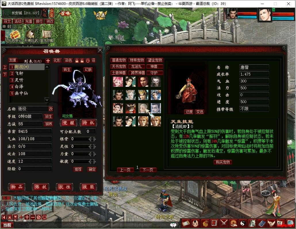 修复召唤兽变色预览点不开报错问题~~(普通宠物 特殊宠物 鎏金宠物 天书宠物 龙涎丸 神兽 跨界神兽 等)