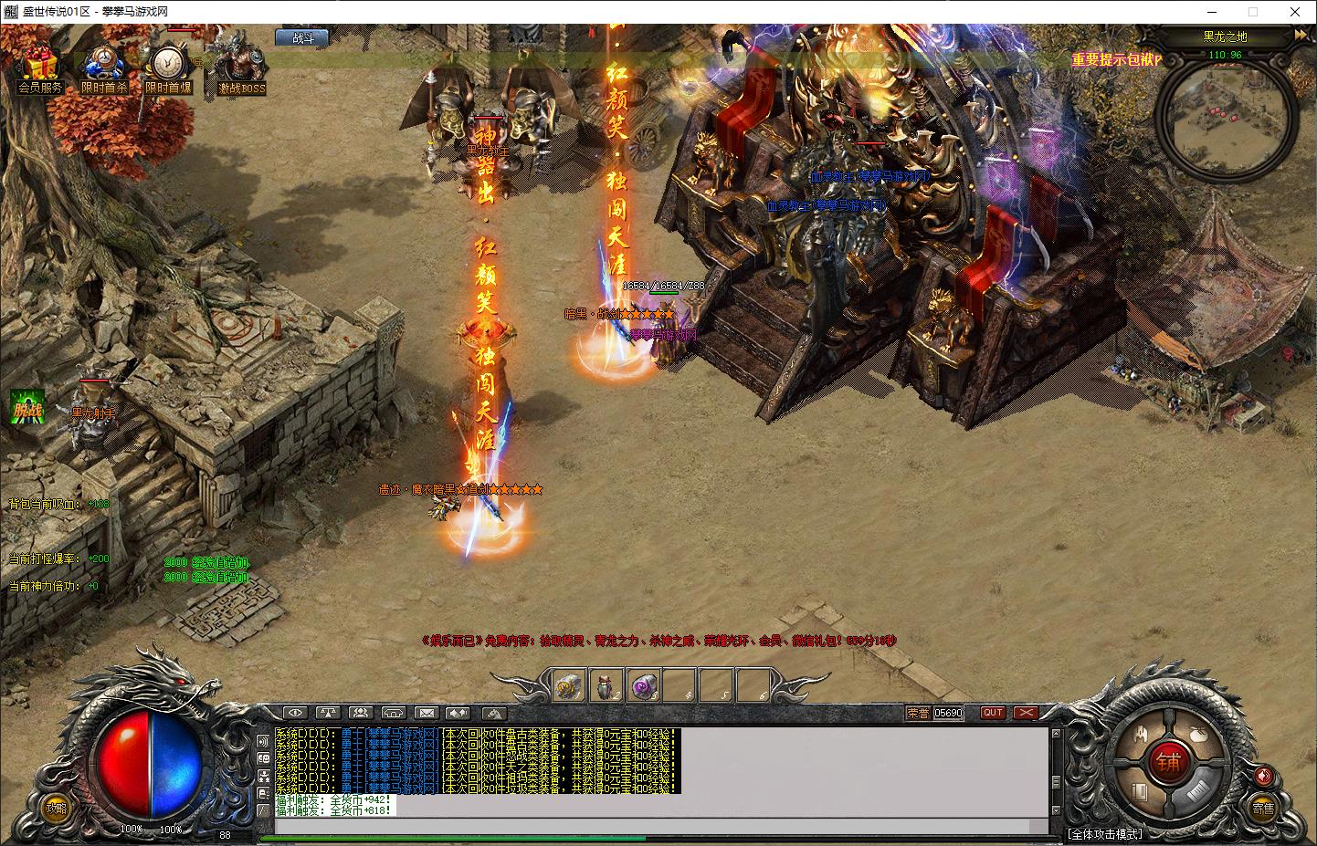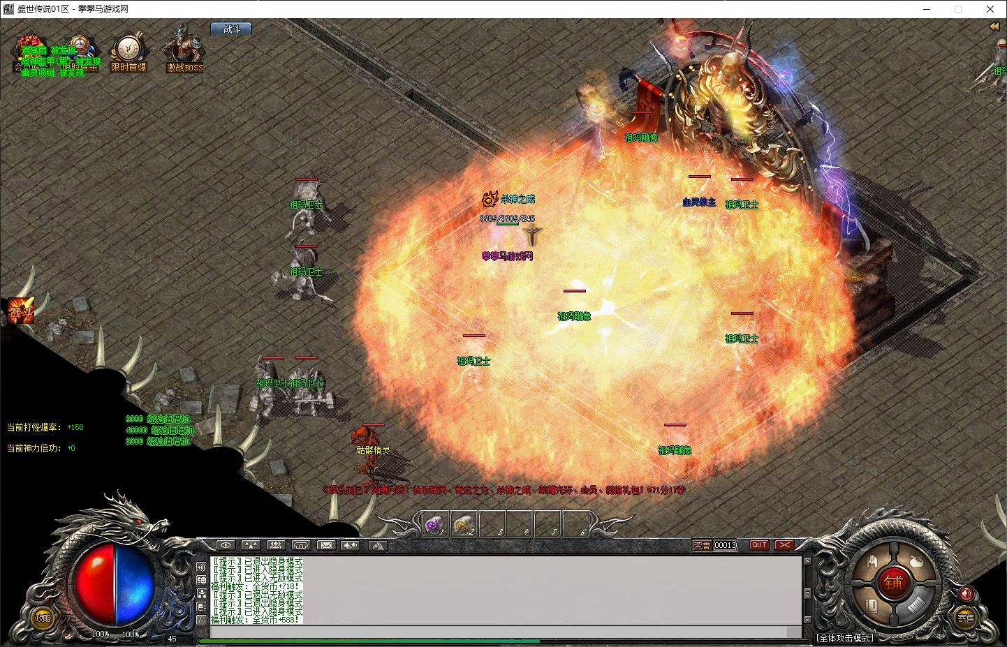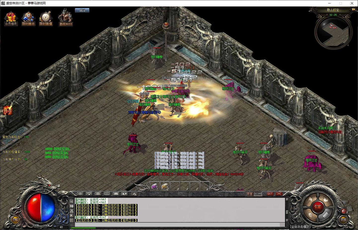 自动拾取技能:可自由切换两种自动拾取方式,可解决大部分爆率过高造成的服务器卡机问题,尤其云服务器