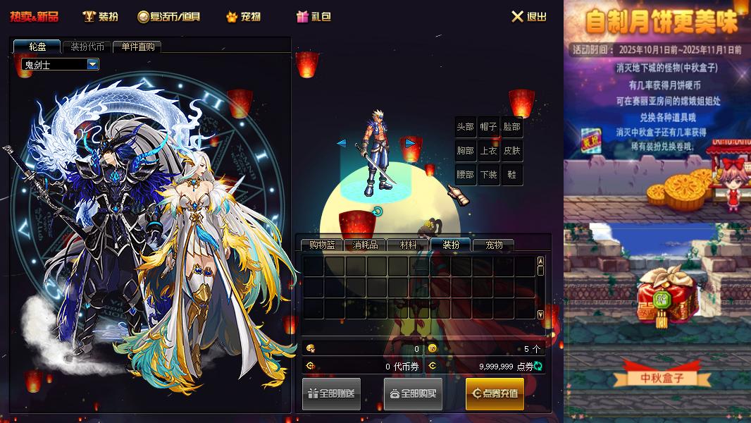 1.修复上市纪念 装扮礼盒鞋子+上衣无圣职者+暗夜时装。