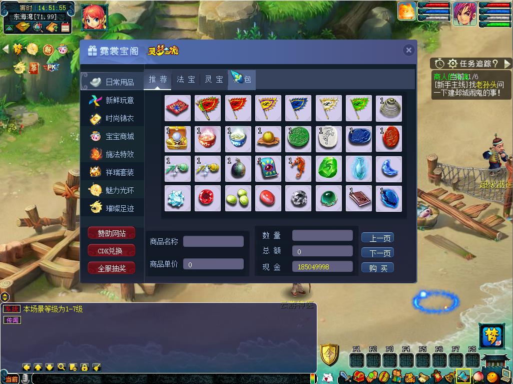 6购买道具主要NPC(商城,商会,宝石商人,傲来云游道人)