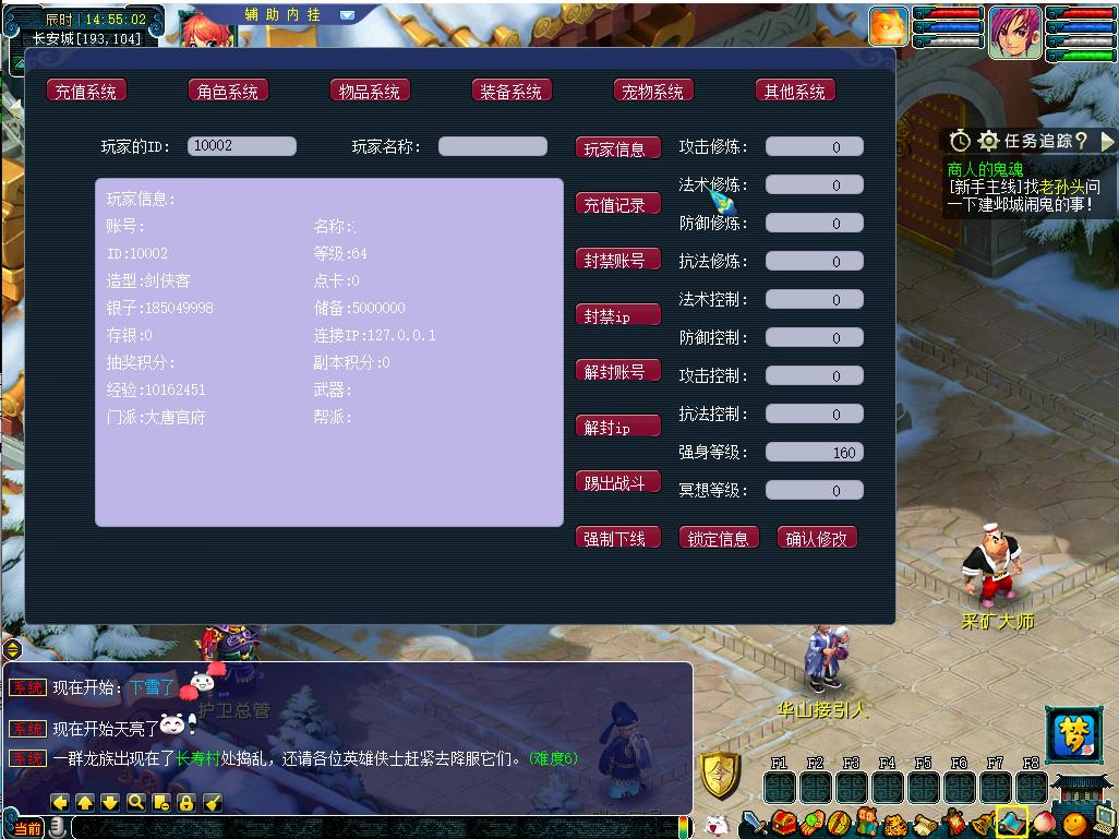 4人物更换门派,种族,角色(长安袁守城,173 264)