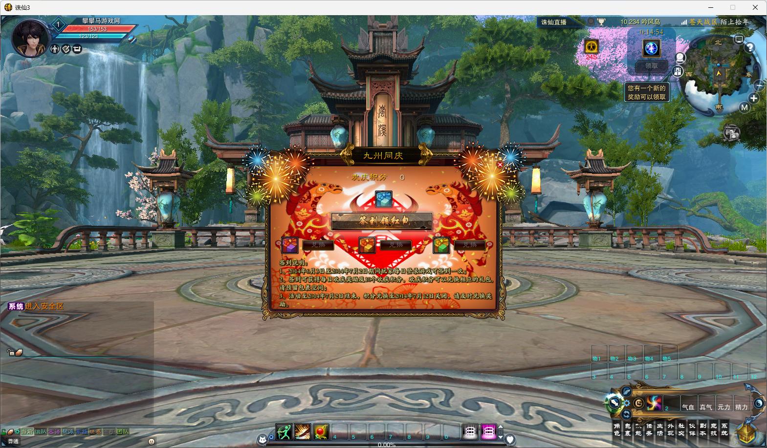 34.开启了天界云渺天河、云渺天河·晓、云渺天河·净、南土一梦副本;