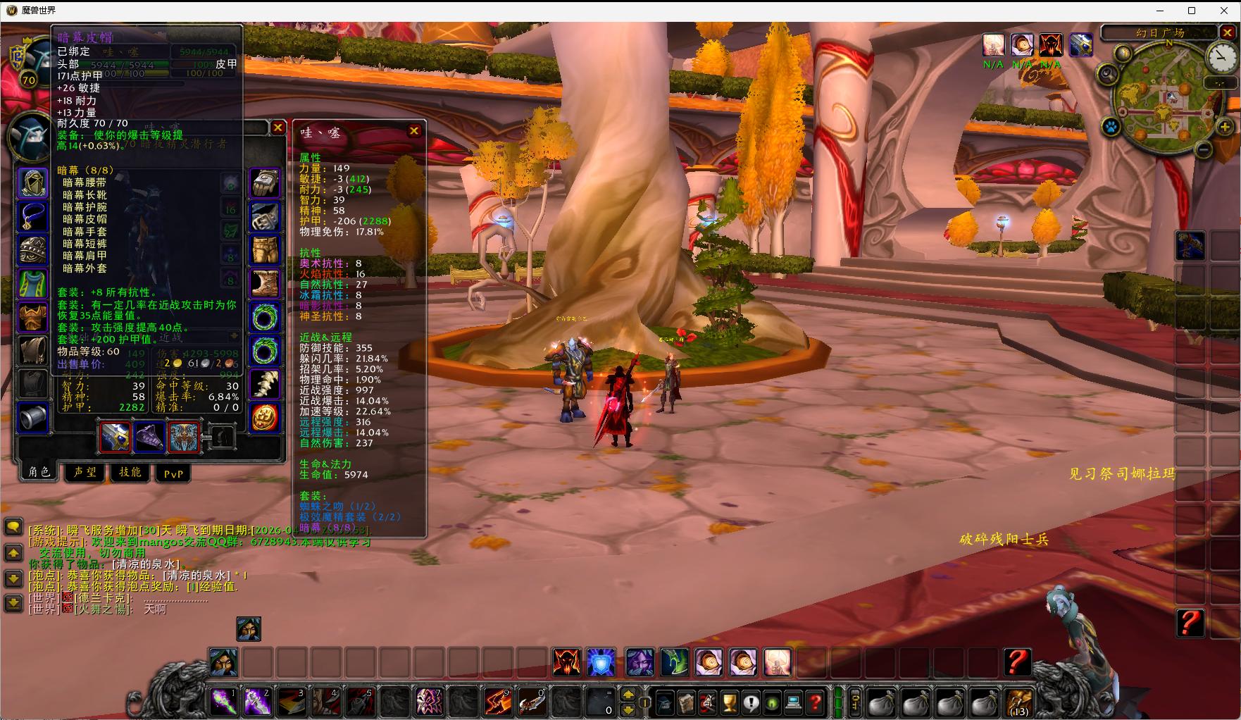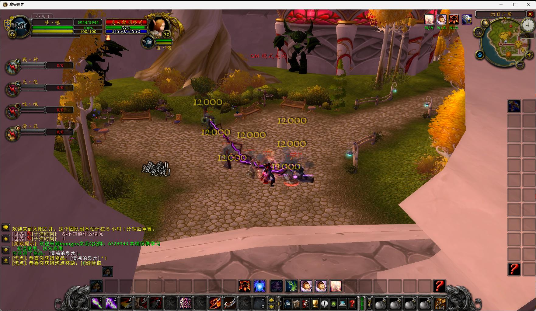 战场混排,随身战场,积分系统,多天赋,瞬飞,副本重置,幻化,自定义多功能NPC,随身多功能宝宝,多售卖NPC,多训练NPC,角色改名,角色转性别,转种族,跨阵营转种族,多专业,秒满专业,声望满级,GM上帝模式,在线泡点,在线假人(模拟真人聊天系统), 副本难度配置,生物配置, 随机附魔(11条全开)。。等等见说明文档。带几张图,还有很多没有说到的,下载链接里面有详细的教程文档,自己去体验